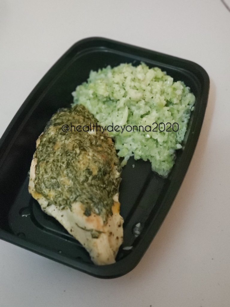 I paired this chicken with homemade cauliflower mash, frozen cauliflower/broccoli rice, and frozen cauliflower/sweet potato rice. This recipe is normally one I would use to stuff inside the chicken breast.